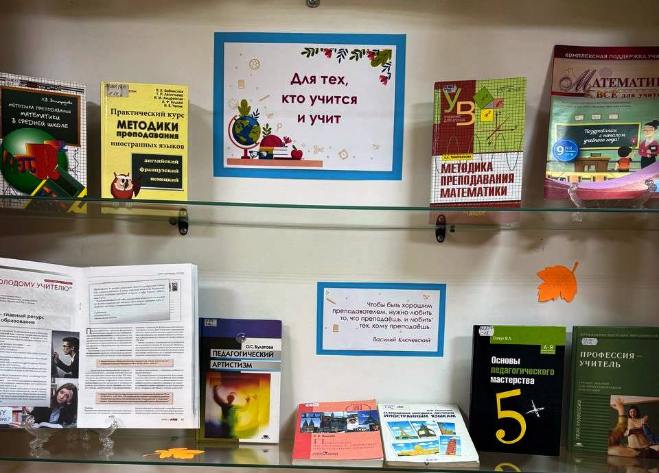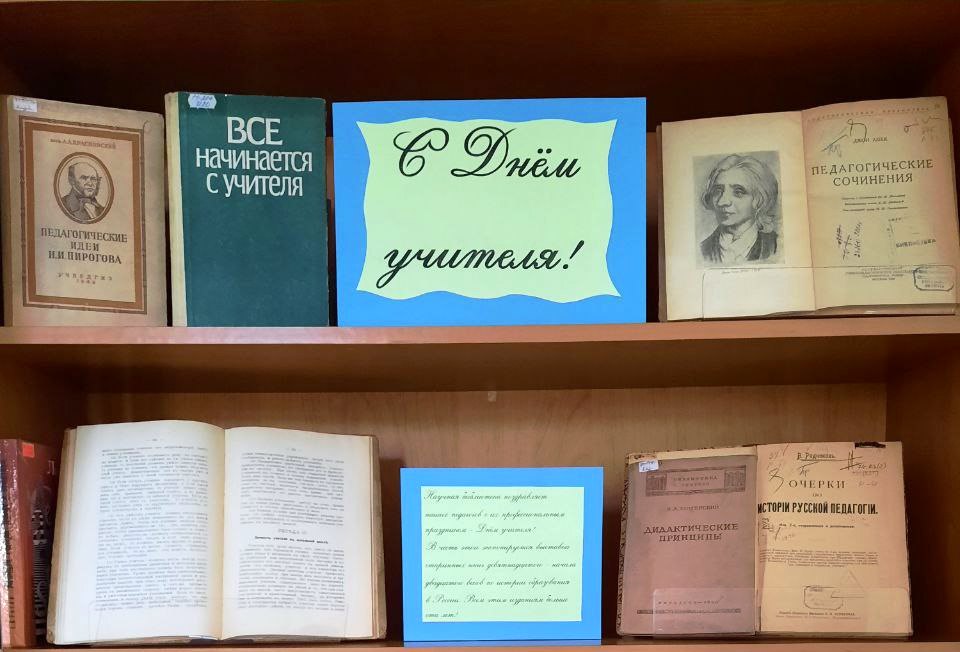 В читальном зале научной библиотеки КГПИ КемГУ на пр. Металлургов, 19 экспонируется книжная выставка, посвященная Дню учителя! Здесь вы найдёте книги и периодические издания, которые расскажут об истории педагогики, выдающихся учителях и современных методиках преподавания.